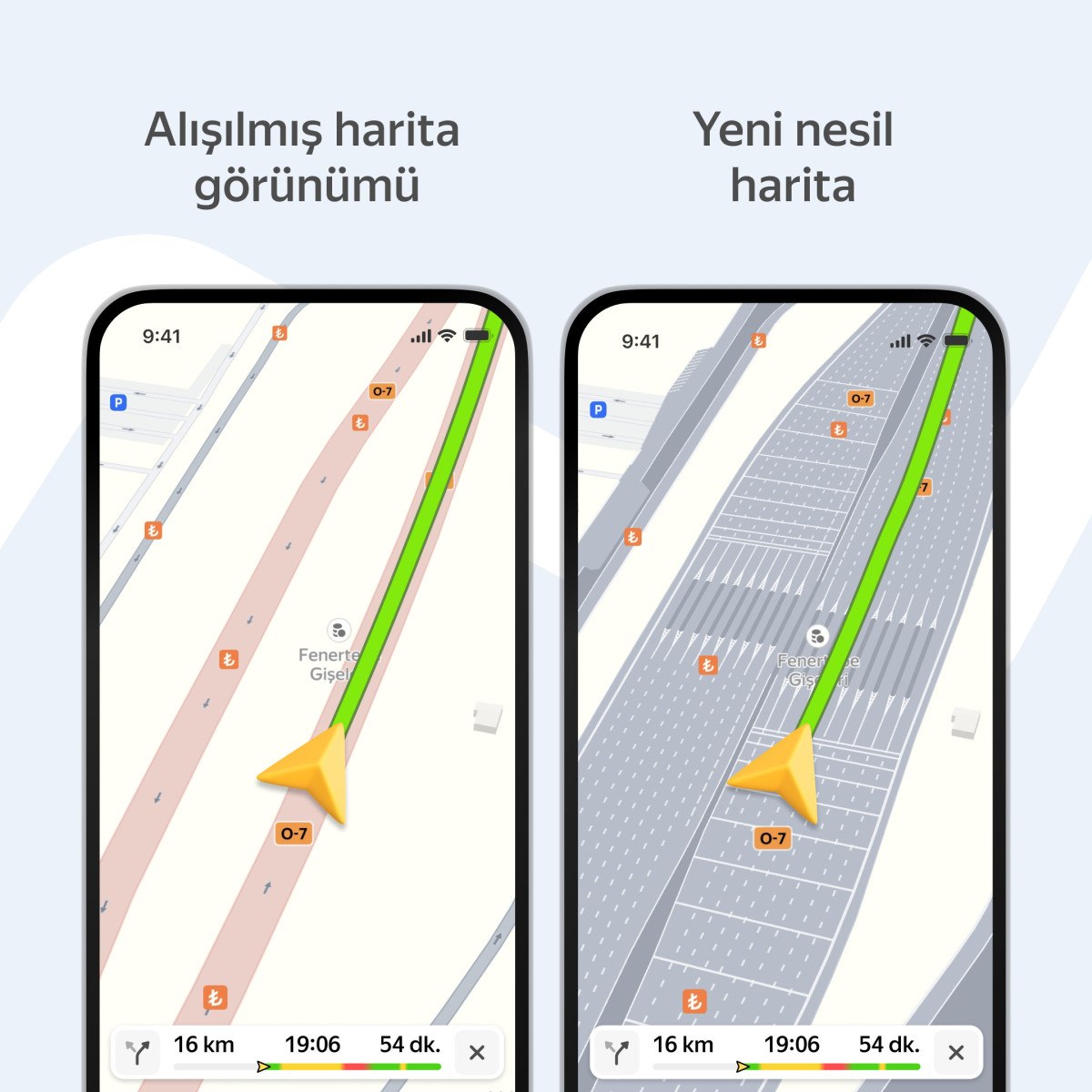 Şerit seviyesinde detaylı harita, Android ve iOS işletim sistemlerinde çalışan Yandex Maps ve Yandex Navi uygulamalarının yanı sıra CarPlay ve Android Auto sistemlerinde de kullanılabiliyor.